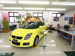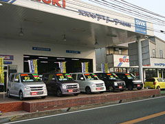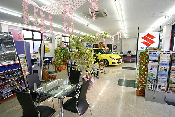 | 社屋左側が中古車コーナー、右側が新車ショールームです。 常時スイフト、スイフトスポーツ、SX-4、エスクードの試乗車をご用意しています。 |
